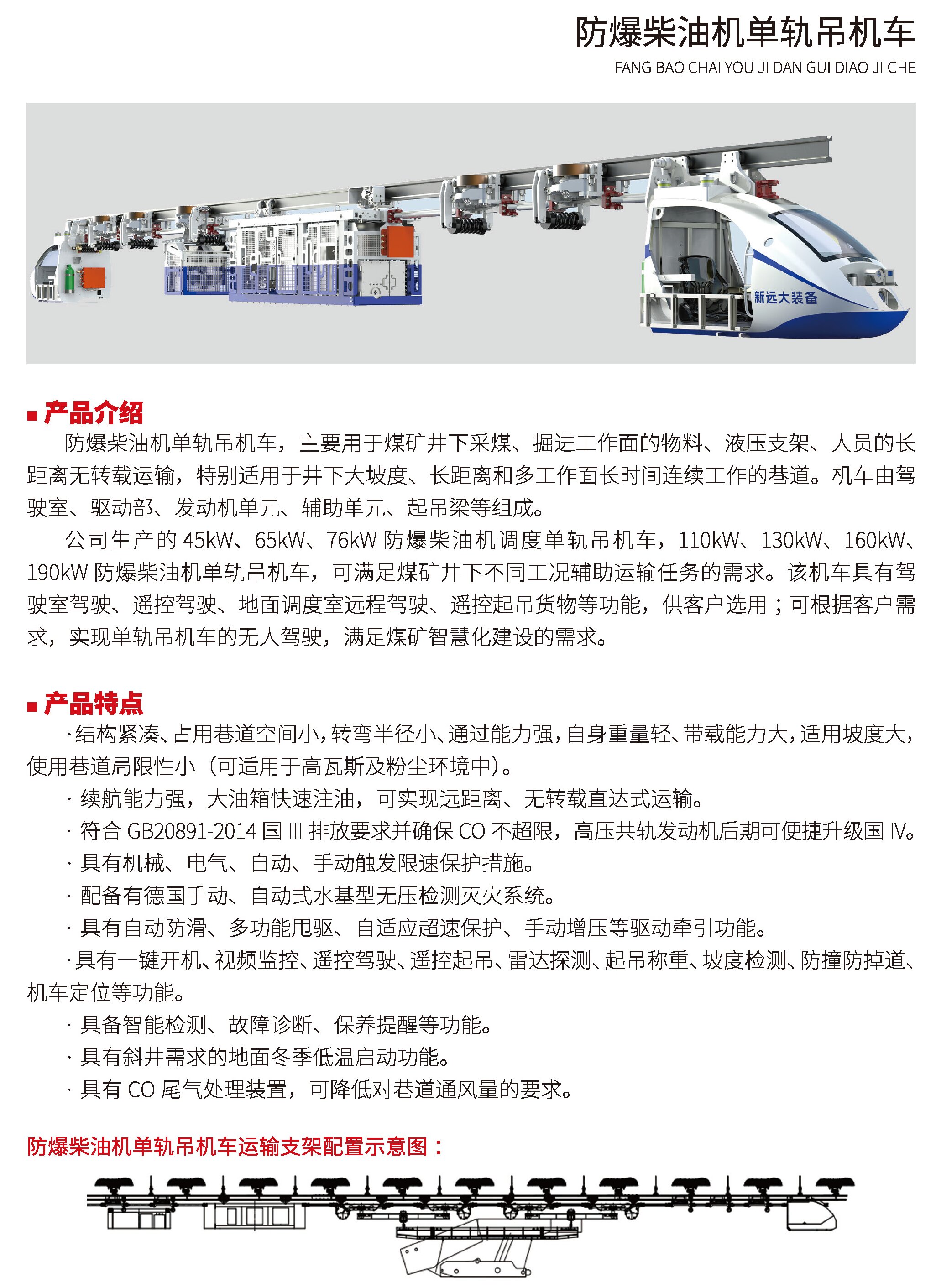防爆柴油機(jī)單軌吊機(jī)車(chē)
